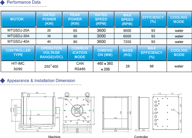 ●high efficiency, high power density (≥1kW/kg), excellent characteristic of constant power